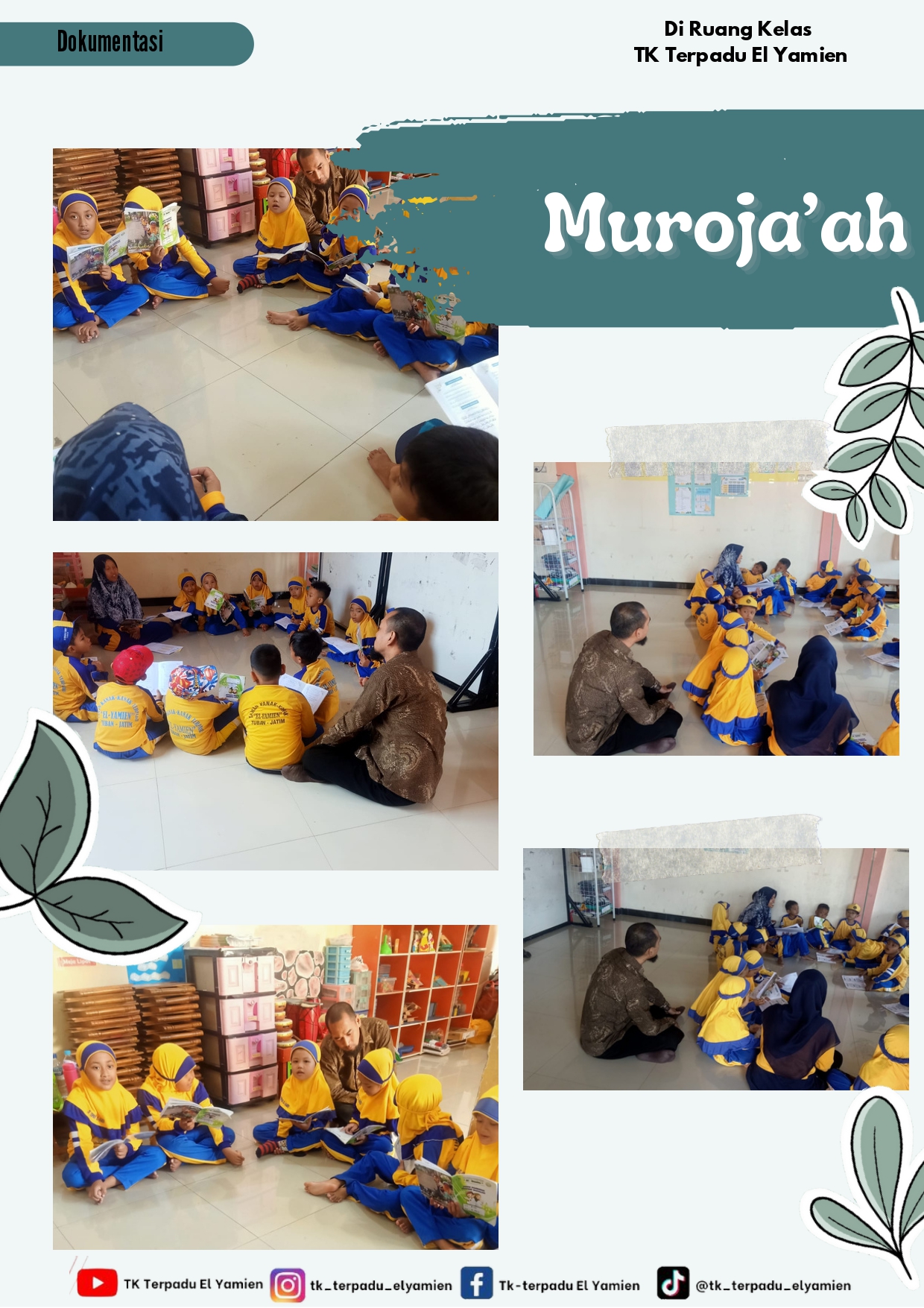 Model Pembelajaran Kelompok merupakan pembelajaran berdasarkan kelompok dengan kegiatan pengaman. Di TK Terpadu El Yamien Kecamatan Semanding Kabupaten Tuban melakukan pembelajaran kelompok pada hari jum'at adapun kegiatan yang dilakukan diawali opening bersama / do'a bersama, pemanasan dan senam sehat ceria kemudian pada intinya yaitu evaluasi muroja'ah surat - surat pendek, do'a sehari - hari dan hadits pilihan. sesekali anak didik juga melakukan kegiatan yaitu jalan sehat di lingkungan sekitar dalam waktu satu bulan sekali.